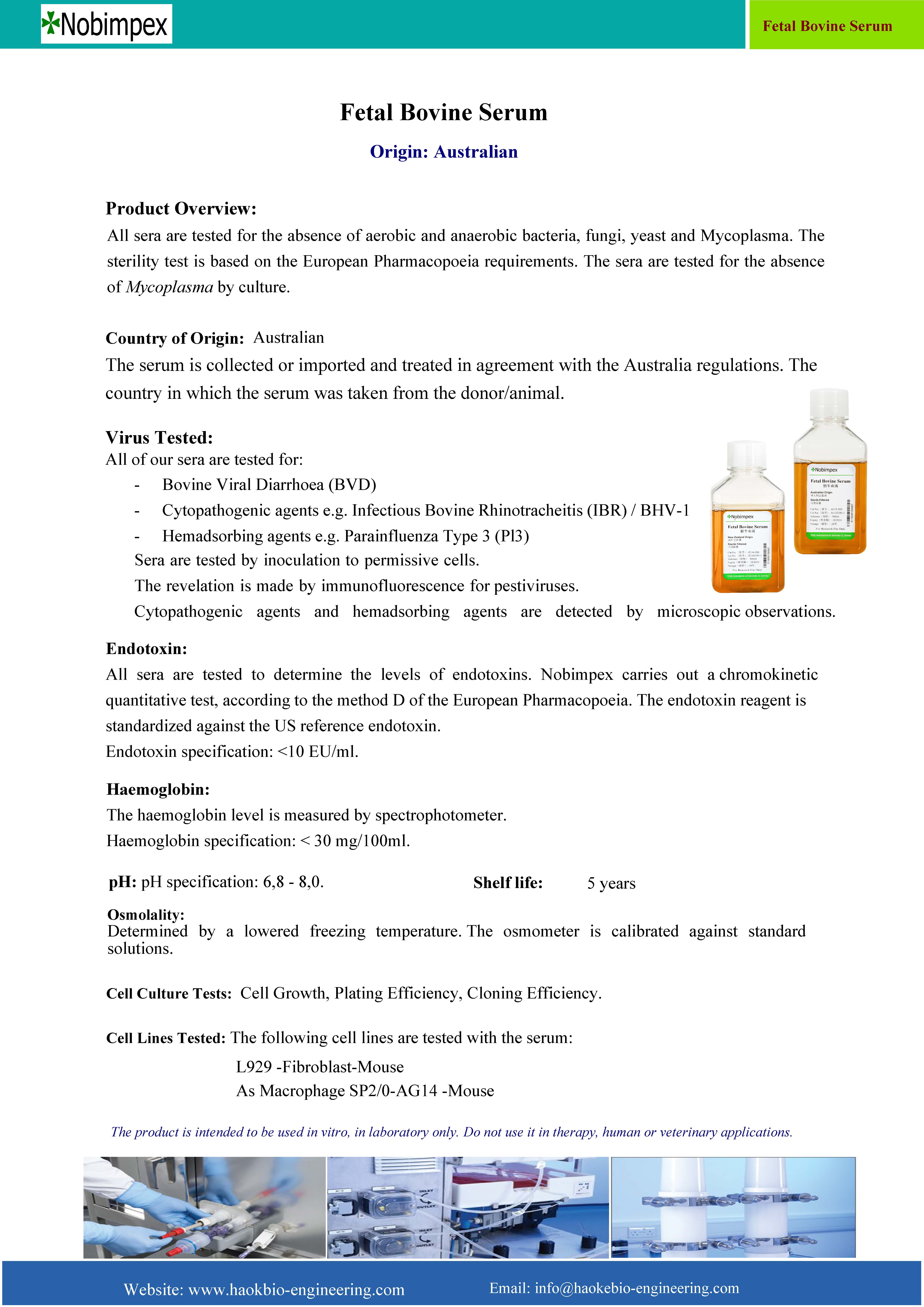 The serum is collected or imported and treated in agreement with the Australia regulations. The country in which the serum was taken from the donor/animal.